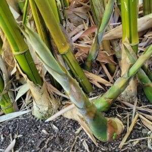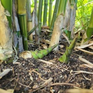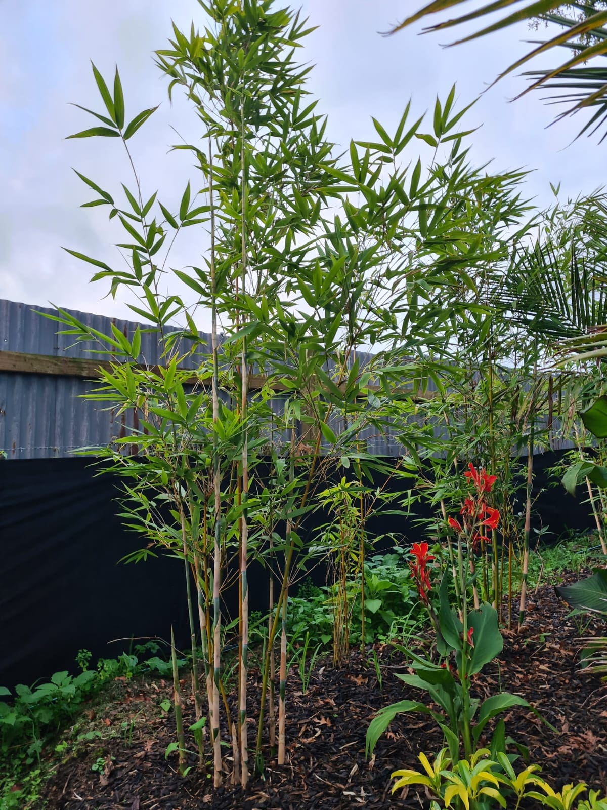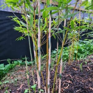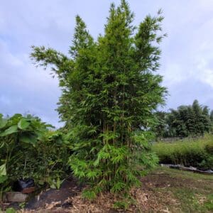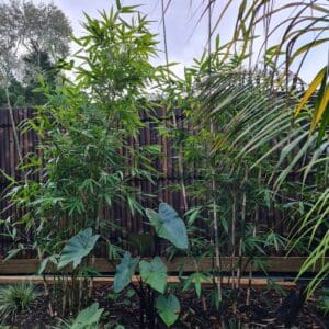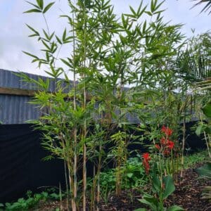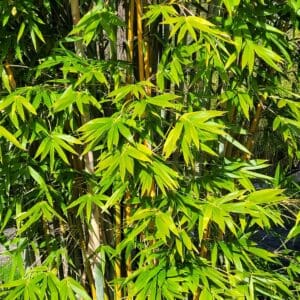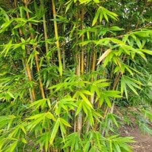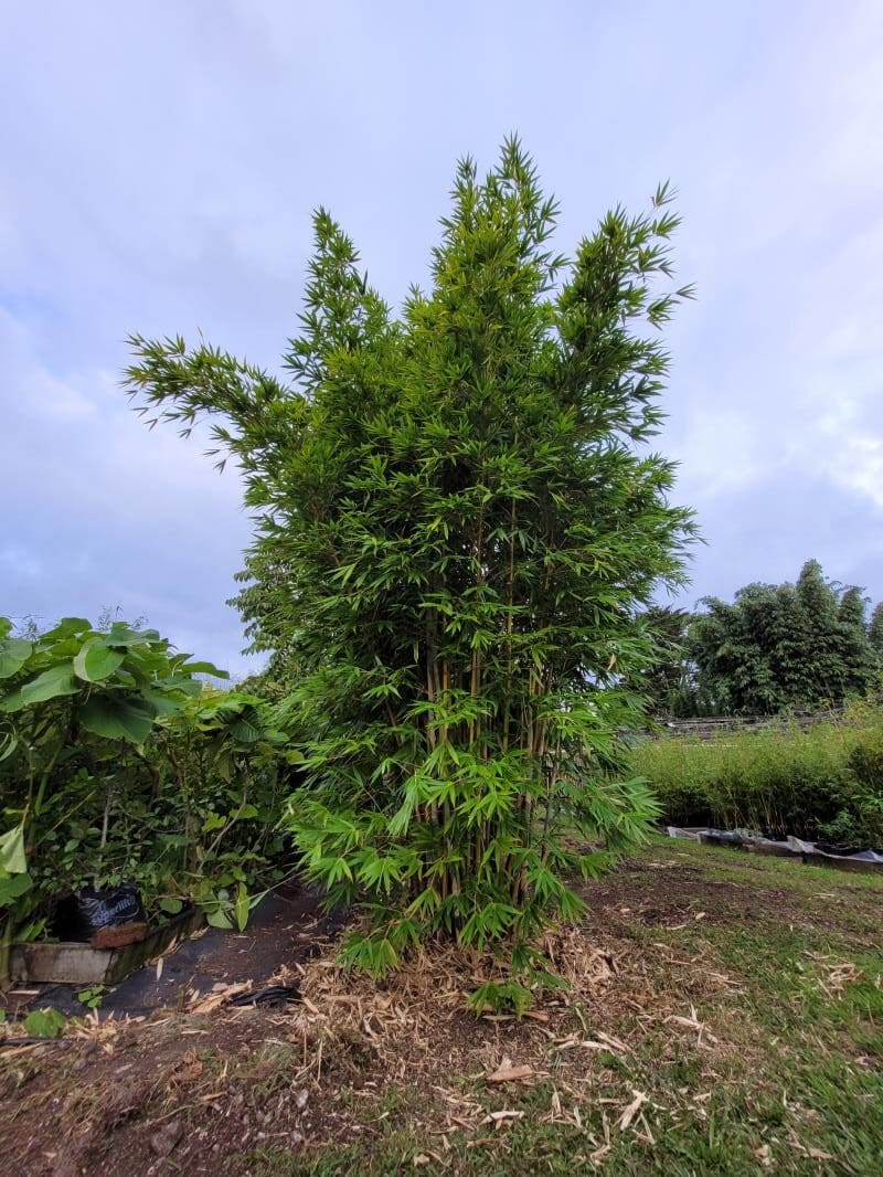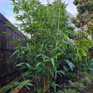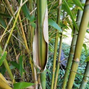 Doli Bamboo is a majestic variety that stands out due to its impressive height, reaching up to around 8 meters tall. Its stout canes and lush green foliage make it a perfect choice for creating tall, elegant screens or natural barriers in large gardens. Whether you’re aiming to add privacy to your outdoor space or create a striking visual feature, Doli Bamboo offers a tropical touch that enhances any landscape. It is also known to have less leaf drop than most bamboos making it popular for planting next to pools.