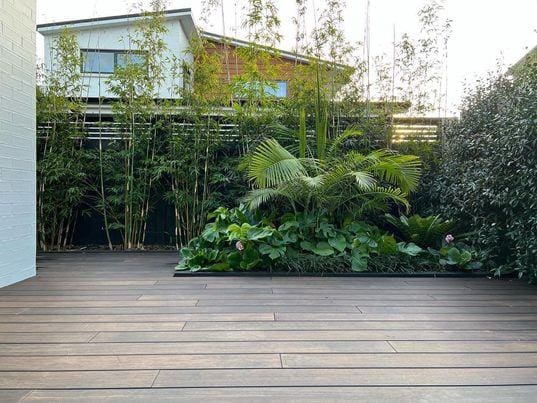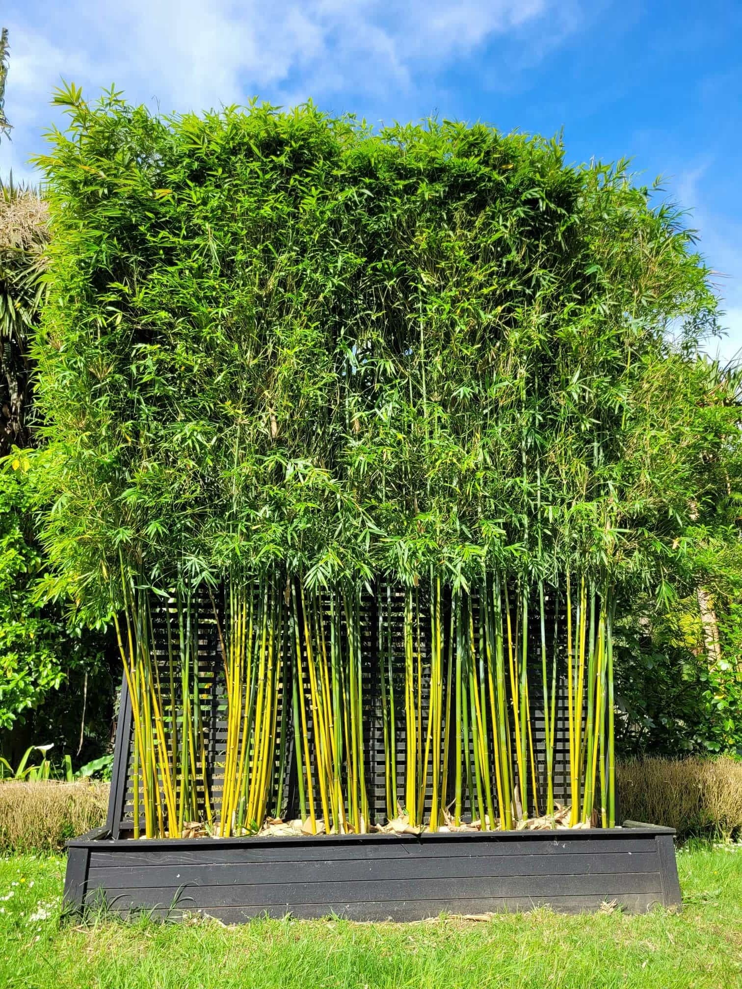 For best results a bottomless planter will keep the width of the plant controlled to the width of the planter. This is not a root barrier as they don’t have invasive roots but it does act as a shoot barrier by restricting the width. This bamboo is NOT suitable for a closed trough planter. These plants need contact with the ground.